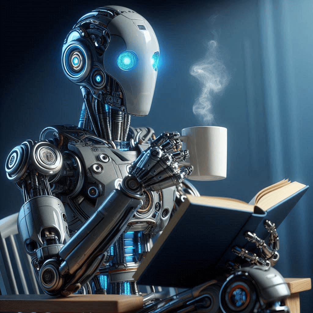 ¡Tomando un café! En el café se encuentra un demonio experto en palabras, en frases originales, en diálogos ininterrumpidos con la Mente central de la IA que se encuentra en el cerebro sobrenatural del Demonio.