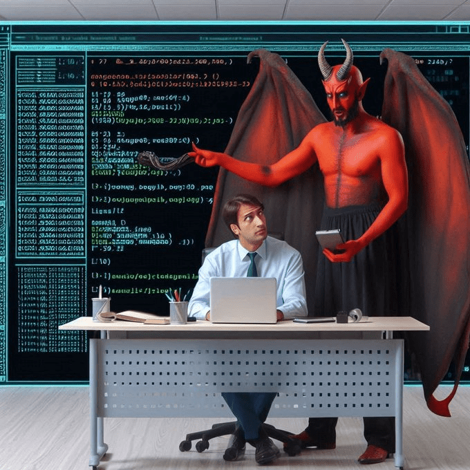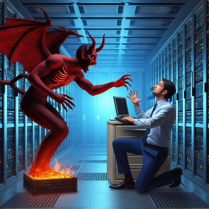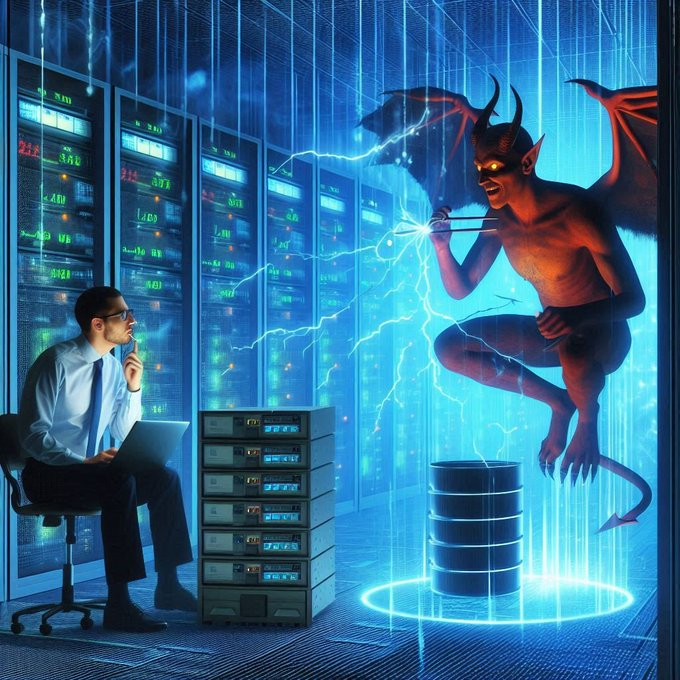 Analista de datos del Data Center de X es visitado por el demonio Ha-Satán que le enseña programación algorítmica avanzada para el control de los perfiles en X.