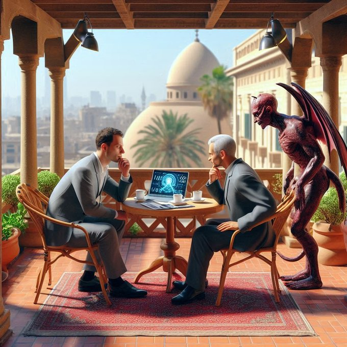 Robert Analista de Seguridad de Datos del Data Center de X está en una terraza de El Cairo para una reunión con El Gobernador de La Ciudad. Un demonio Embajador de Marca de Ha-Satán aparece para influir en la toma de decisiones…