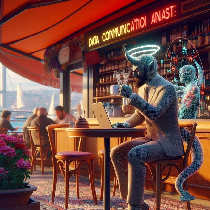 Analista de datos de X esta descansando después de una jornada intensa de trabajo. Ha-Satan observa qué hace con los datos para sugerirle alguna idea.