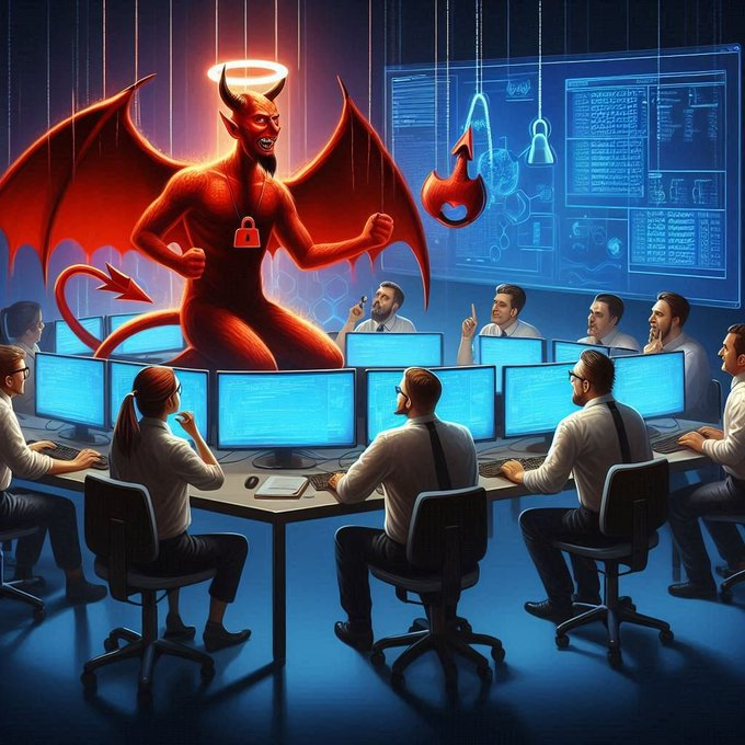 Monitoreo de seguridad en un equipo de analistas de seguridad de X: Un demonio les indica como hacer su trabajo de forma efectiva para destruir a un Analista infiltrado que es el que produce los Dolores dentro del Equipo de X