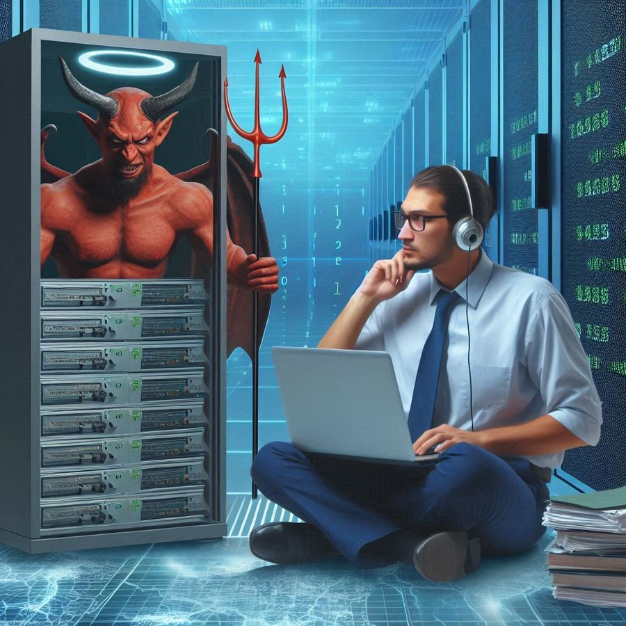 Supervisor de un equipo de 6 Analistas de datos en la Nube de X está poseído por un Demonio de la Segunda Jerarquía, su misión es hacer la voluntad de Ha-Satán en X, ha-Satán es El Demonio.